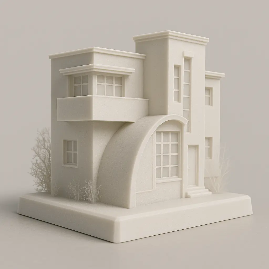 Su nombre proviene de las formas puras que la componen: volúmenes prismáticos, planos rectos y ángulos definidos que generan un juego armónico de sombras y perspectivas. La casa encarna los principios del Movimiento Moderno, donde la geometría, la luz y la relación con el entorno se integran para otorgar un carácter único a la obra.